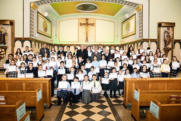 Bishop Nicholas DiMarzio distributed scholarship award certificates to each student present. “Today we recognize the value of Catholic education and many people have helped raise money to help so many children,” he said. “This is an early Christmas gift, but probably only the parents see it that way,” the bishop said. “The whole point is to keep our children in Catholic schools… We want children in Catholic schools so I tell all the children to tell their friends in public schools to come and look at our schools. Who knows? Maybe there is a scholarship for them too.”